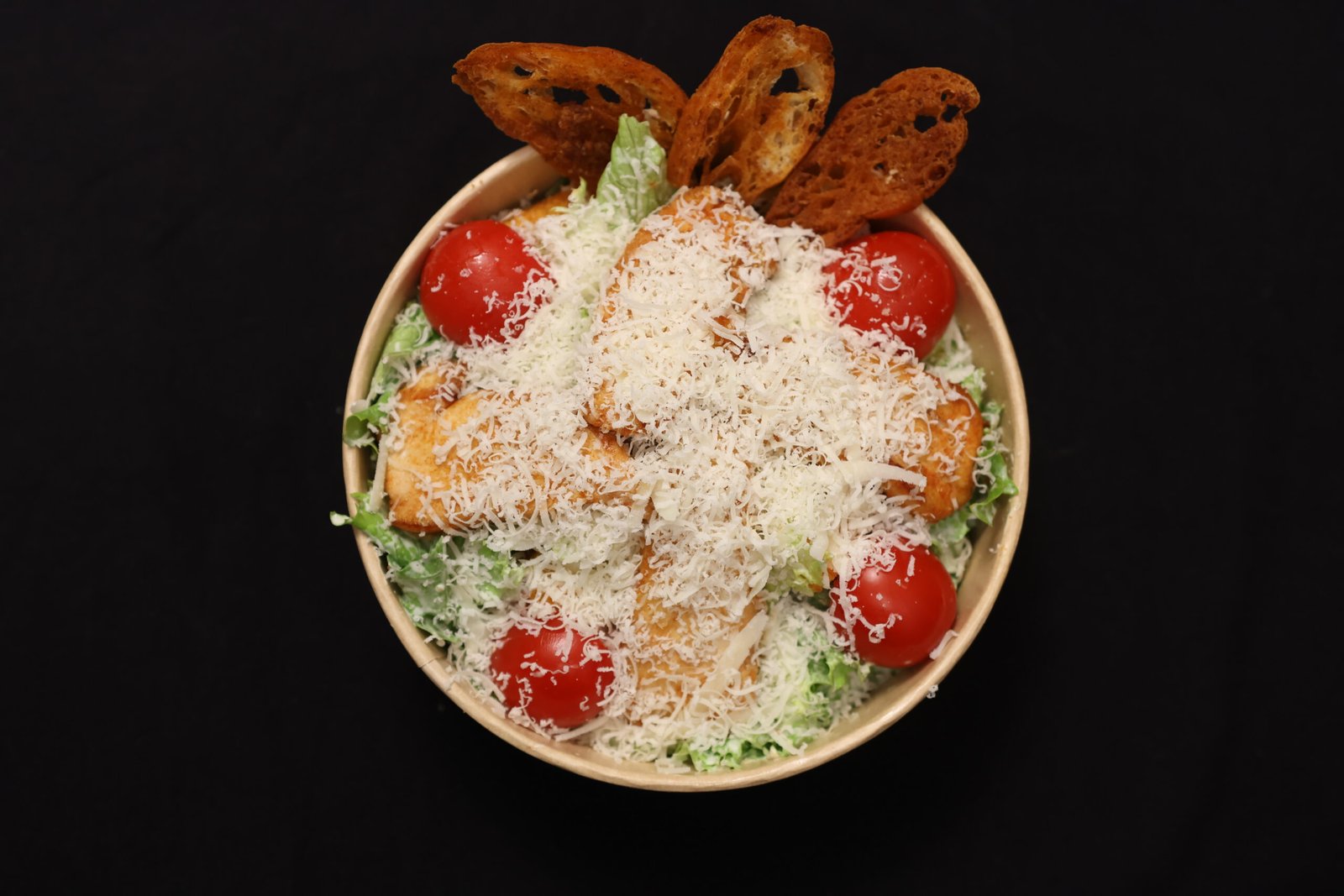 ქათმის მკერდის ფილე სალათის ფოთოლი კვერცხი ზეთი მდოგვი სოიოს სოუსი ვორჩესტერის სოუსი ტაბასკო ზეთი და მარილი.